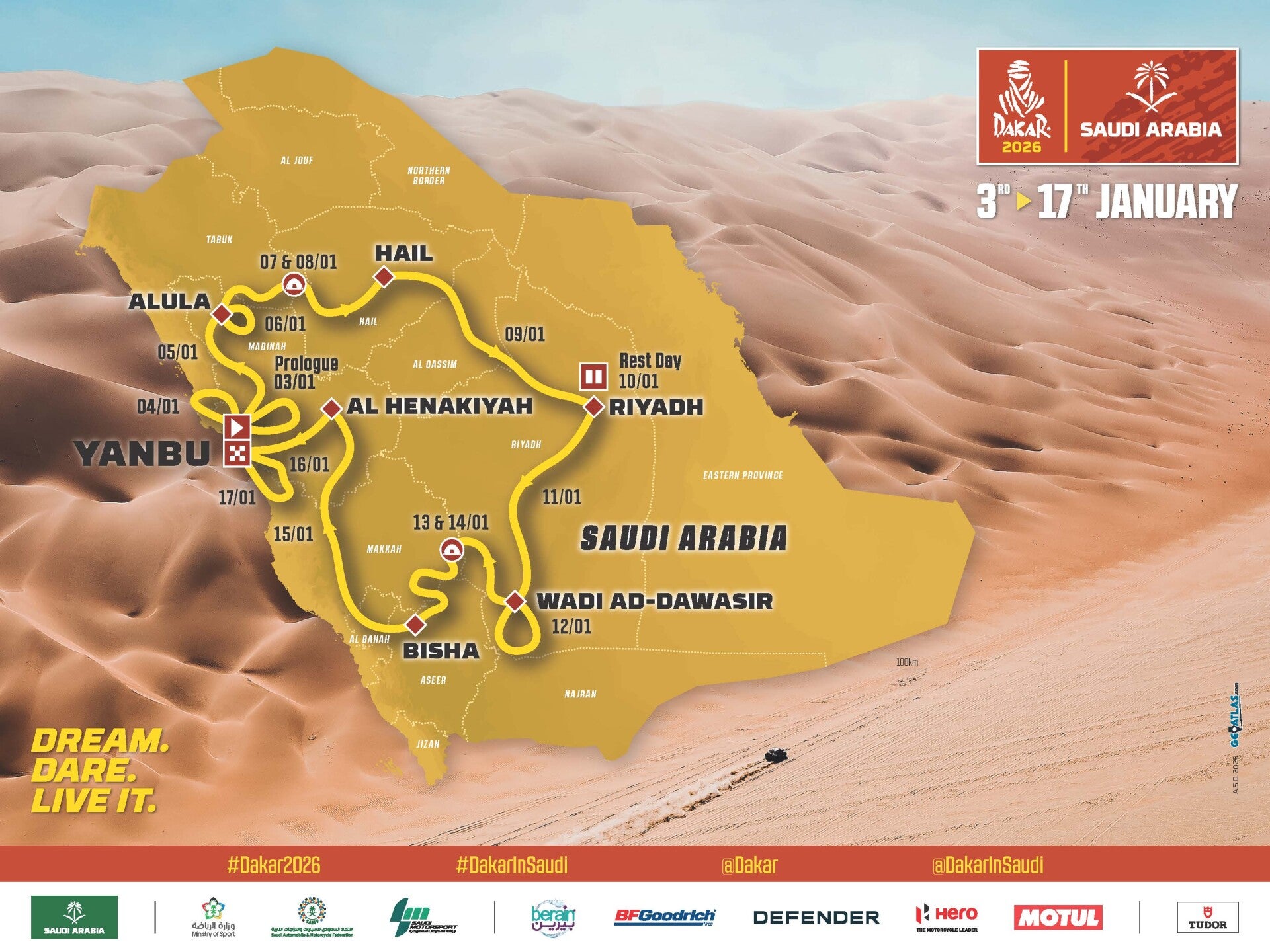 Bekijk hiernaast de route voor dit jaar: de start is in Bisha en de finish in Shubaytah. Tussen deze twee punten wacht een spectaculair parcours vol uitdagingen en spannende momenten.